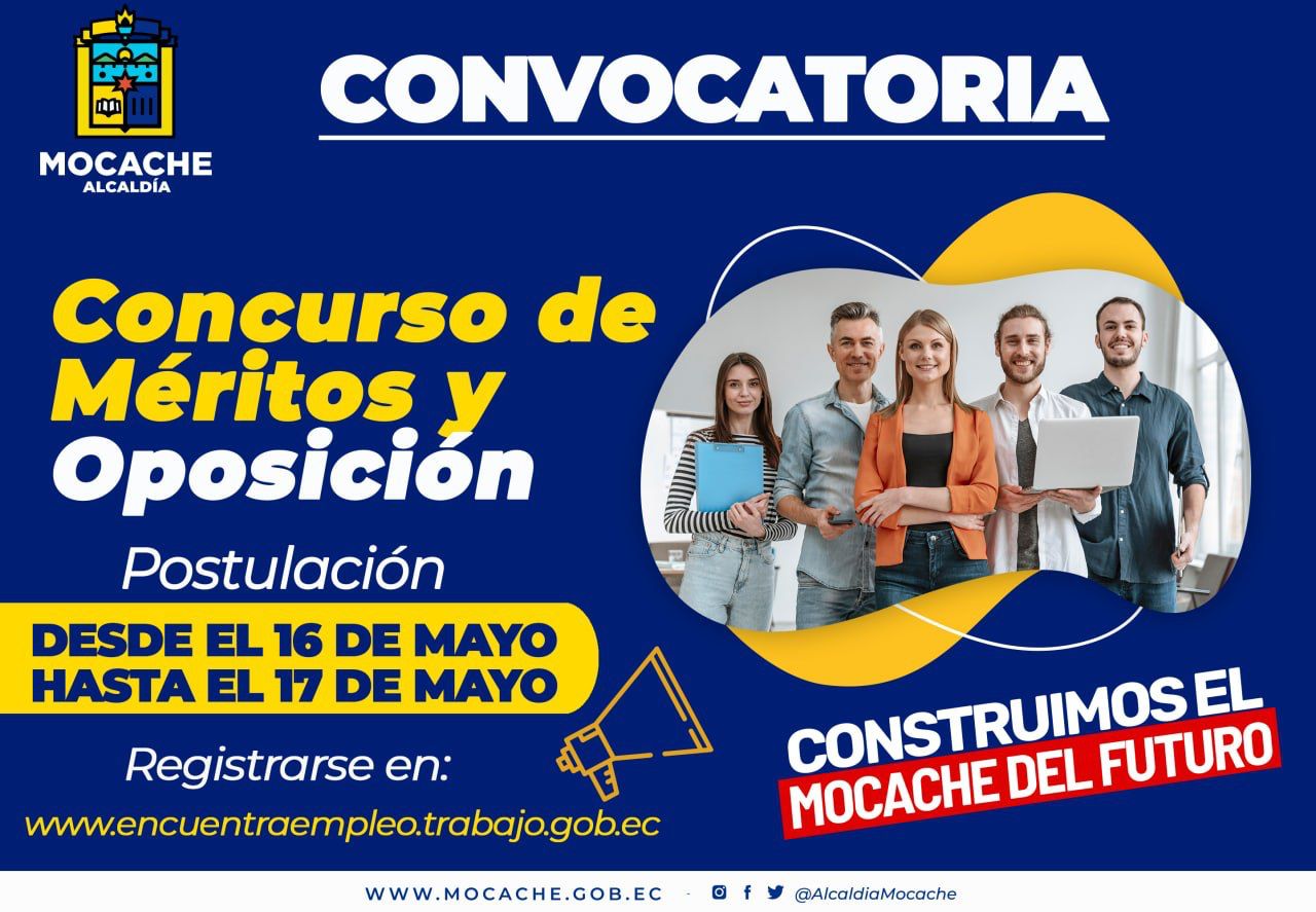 El Gobierno Autónomo Descentralizado Municipal del Cantón Mocache, convoca a la ciudadanía en general a participar en el concurso abierto de Méritos y Oposición para ocupar las siguientes vacantes: