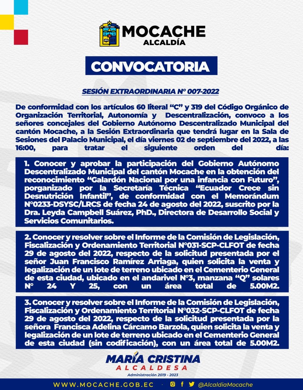 Convocatoria Extraordinaria 007-2022