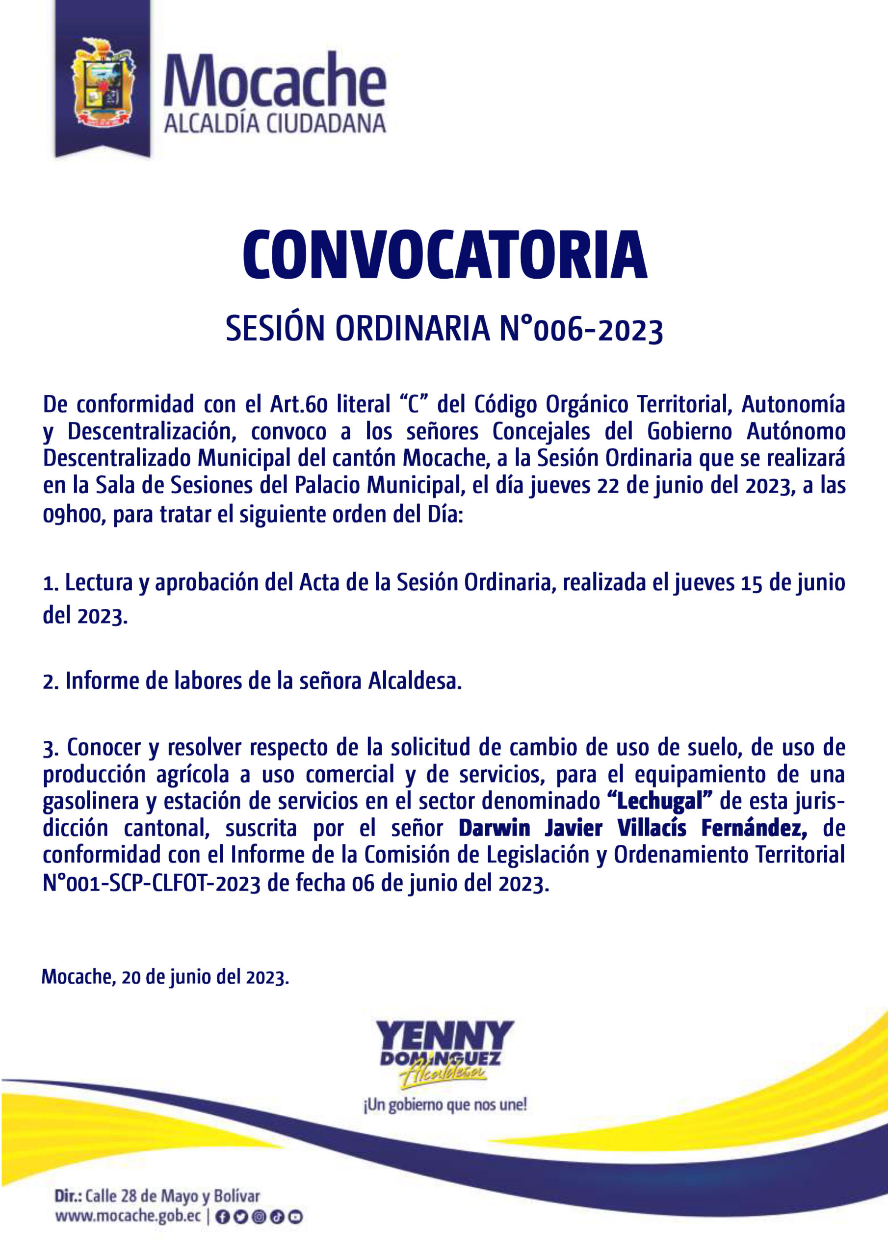 CONVOCATORIA SESIÓN DE CONCEJO No. 006-2023