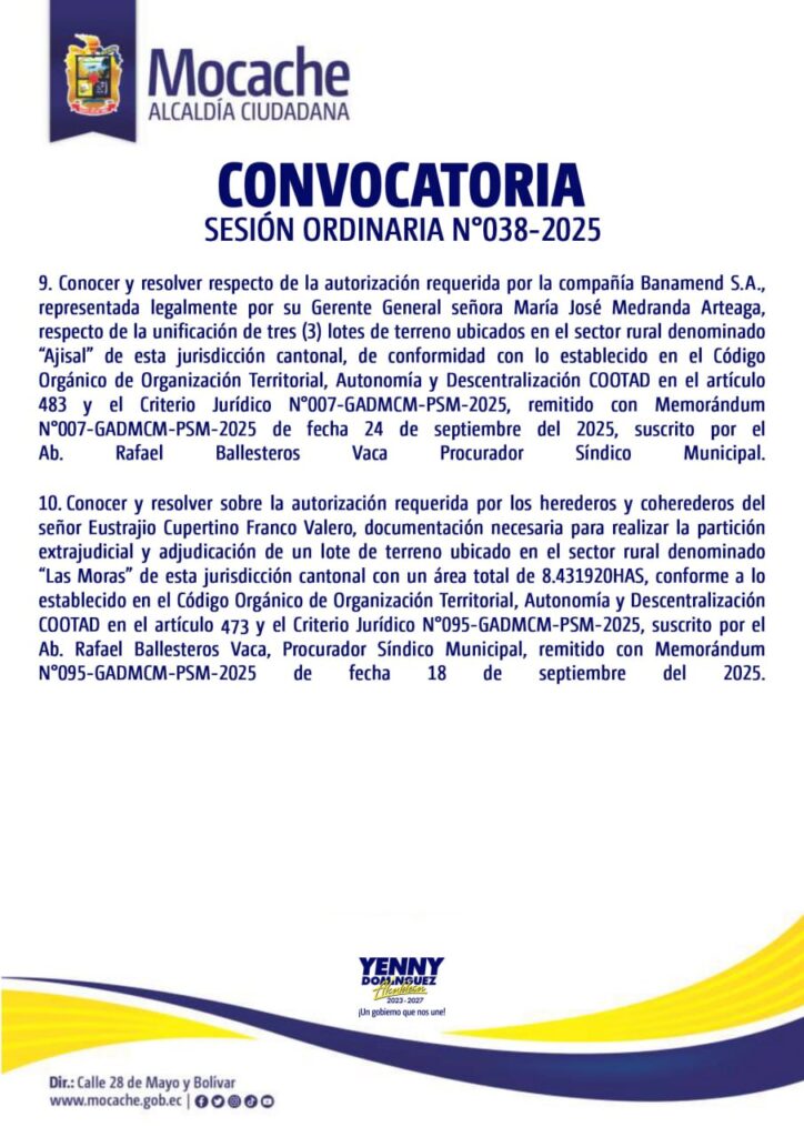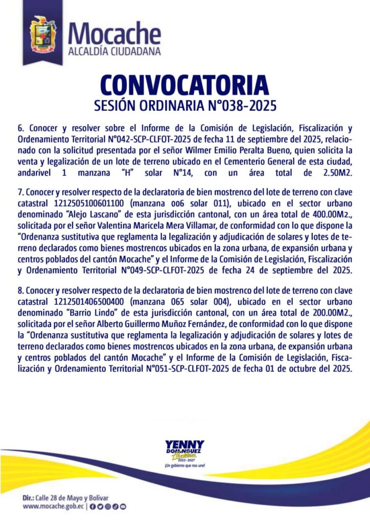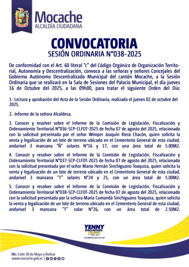 CONVOCATORIA SESIÓN ORDINARIA N°038-2025
