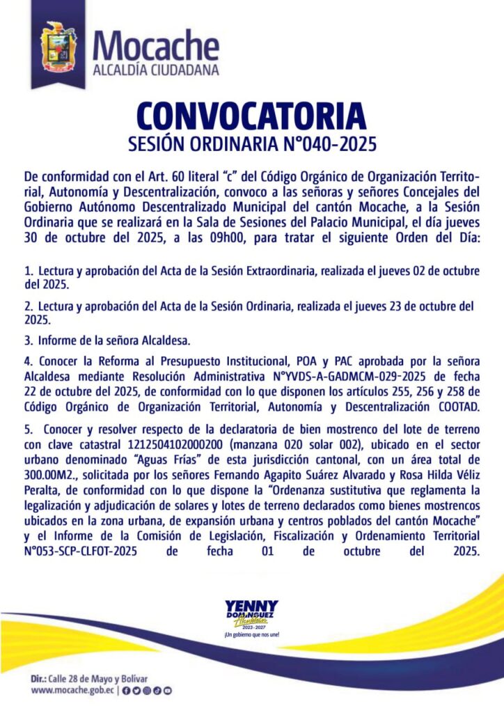 CONVOCATORIA SESIÓN ORDINARIA N°040-2025