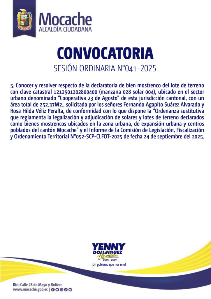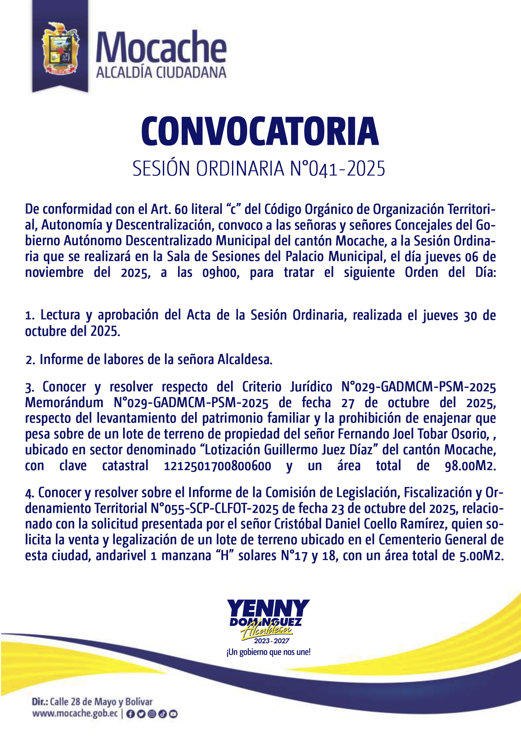 CONVOCATORIA SESIÓN ORDINARIA N°041-2025