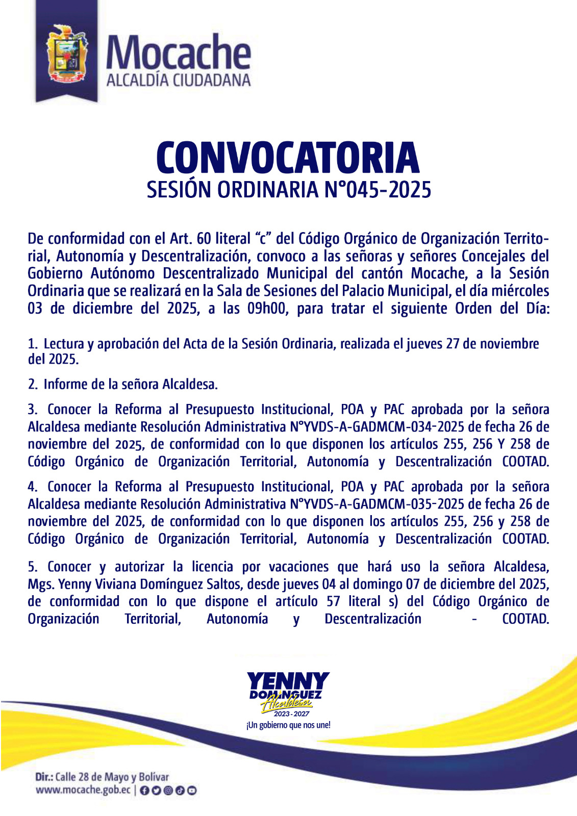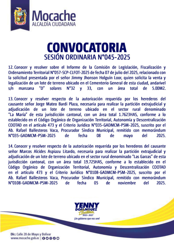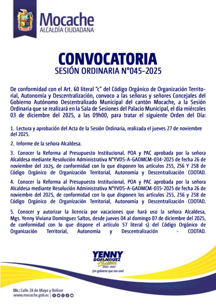 CONVOCATORIA SESIÓN ORDINARIA N°045-2025