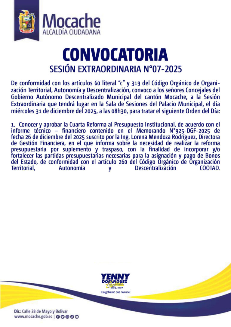CONVOCATORIA SESIÓN EXTRAORDINARIA N°07-2025