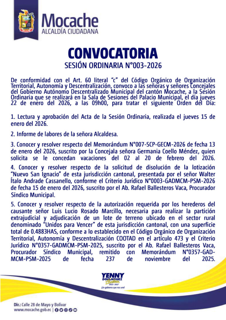 CONVOCATORIA SESIÓN ORDINARIA N°003-2026