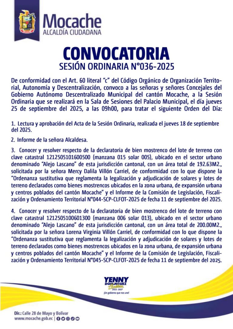 CONVOCATORIA SESIÓN ORDINARIA N°036-2025