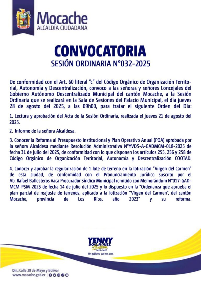 CONVOCATORIA SESIÓN ORDINARIA N°032-2025