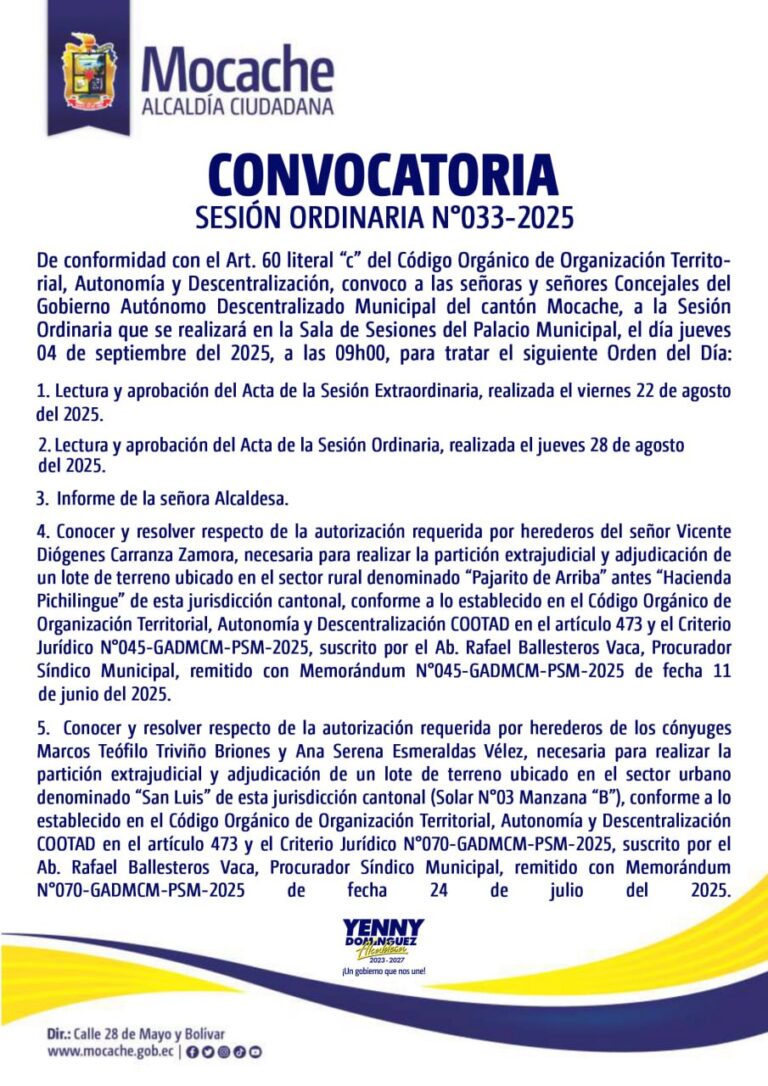 CONVOCATORIA SESIÓN ORDINARIA N°033-2025