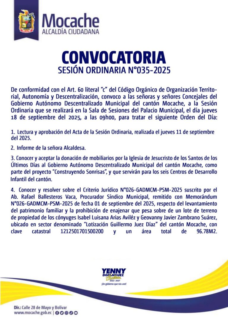 CONVOCATORIA SESIÓN ORDINARIA N°035-2025
