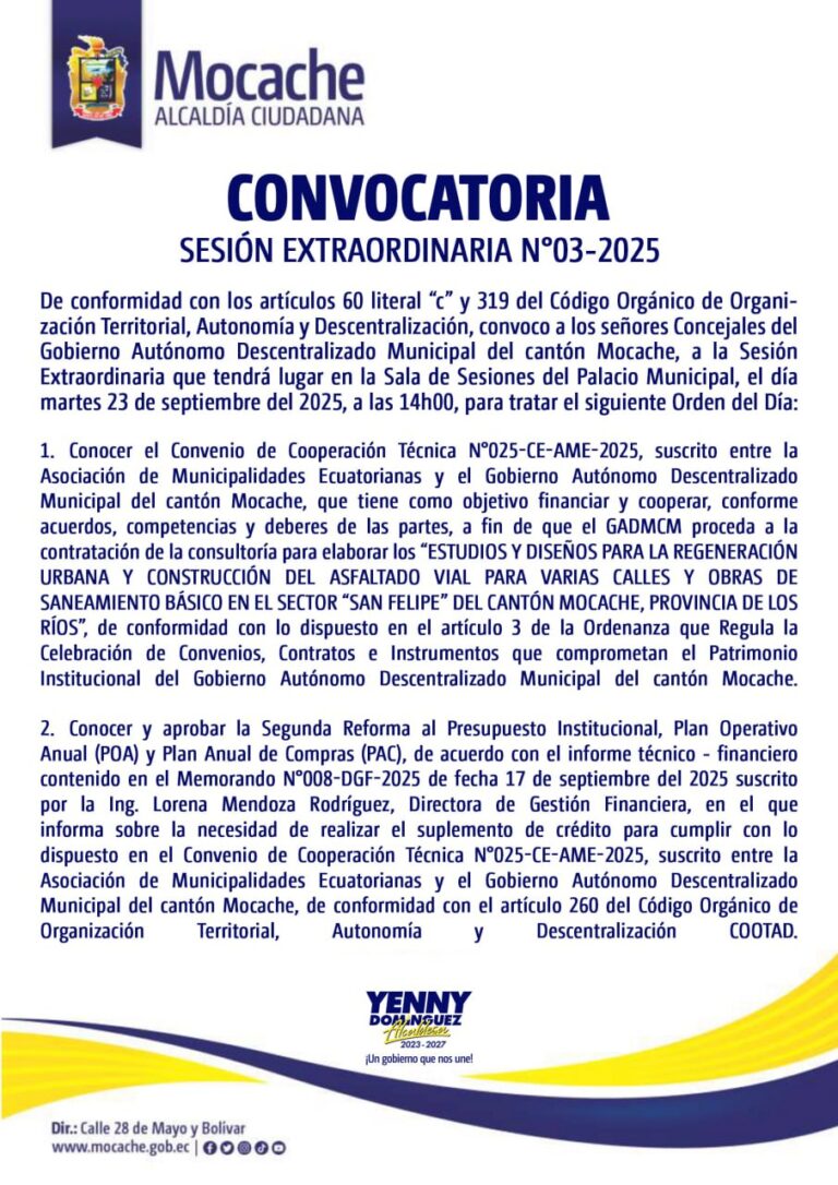 CONVOCATORIA SESIÓN EXTRAORDINARIA N°03-2025